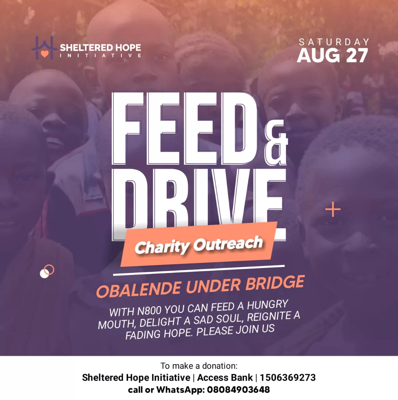 SHi's first support outreach to the marginalised, providing food, clothing and lending an ear to the struggles of the homeless on the streets of Yaba, Lagos State.